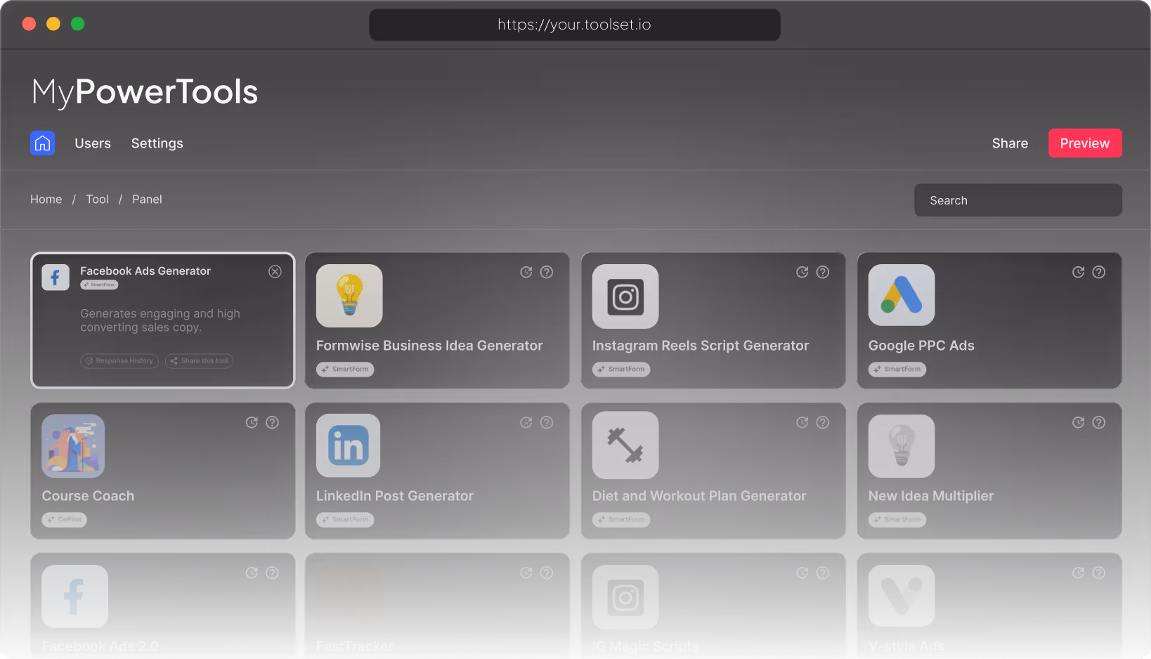 Build powerful, structured tools that generate real output, proposals, captions, plans and more.