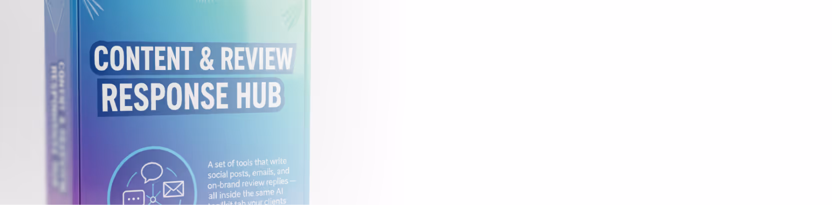 A set of tools that write social posts, emails, and on-brand review replies — all inside the same AI Toolkit tab your clients can access anytime.