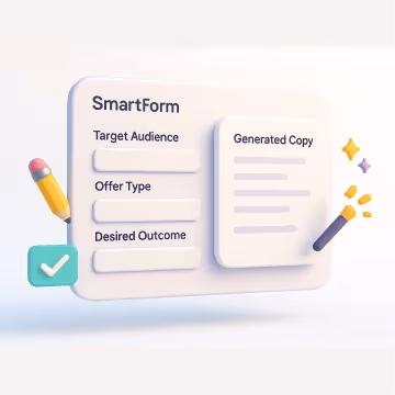 SmartForms are dynamic, AI-powered forms that collect user inputs and generate highly personalized outputs based on customizable prompt logic. They allow businesses to: